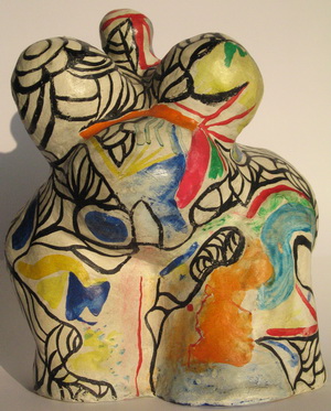 Nana, 1968 Unique, plaster sculpture, 14 x 16 x 14 cm It is one of the early works which has been painted by Niki de Saint-Phalle and Jean Tinguely together as per the information of the gallery. Below the base the sculpture has been market as follows: «For Kay, from Niki» |