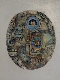 Pièce unique Collage sur bois 66 x 51 cm „Relief-Cosmos“ œuvre fait avec des déchets de fer et exposé lors de la Biennale de Paris 1965